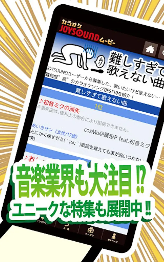 As it is delivering CROSSO / f1 data of JOYSOUND. Moreover, because horizontal screen support, ♪ like are also at home to karaoke BOX course fast-forward / rewind, etc. any way you want! If the monthly member registration (excluding tax ¥ 300), can be enjoyed in the all-you-can-sing songs!