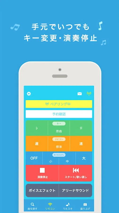 "Key change" "performance stop" "reservation song confirmation" is easy operation with smartphone.
