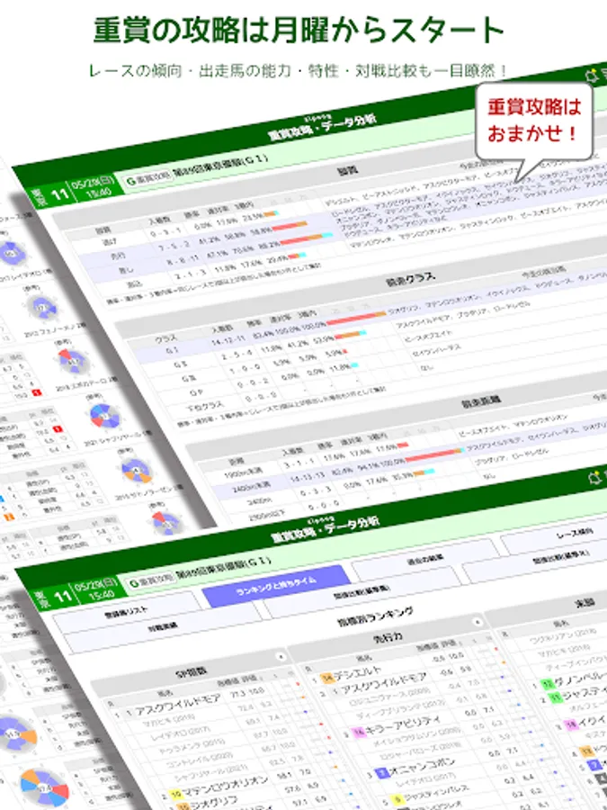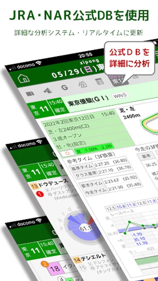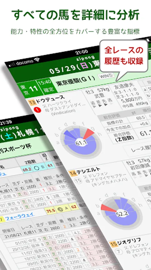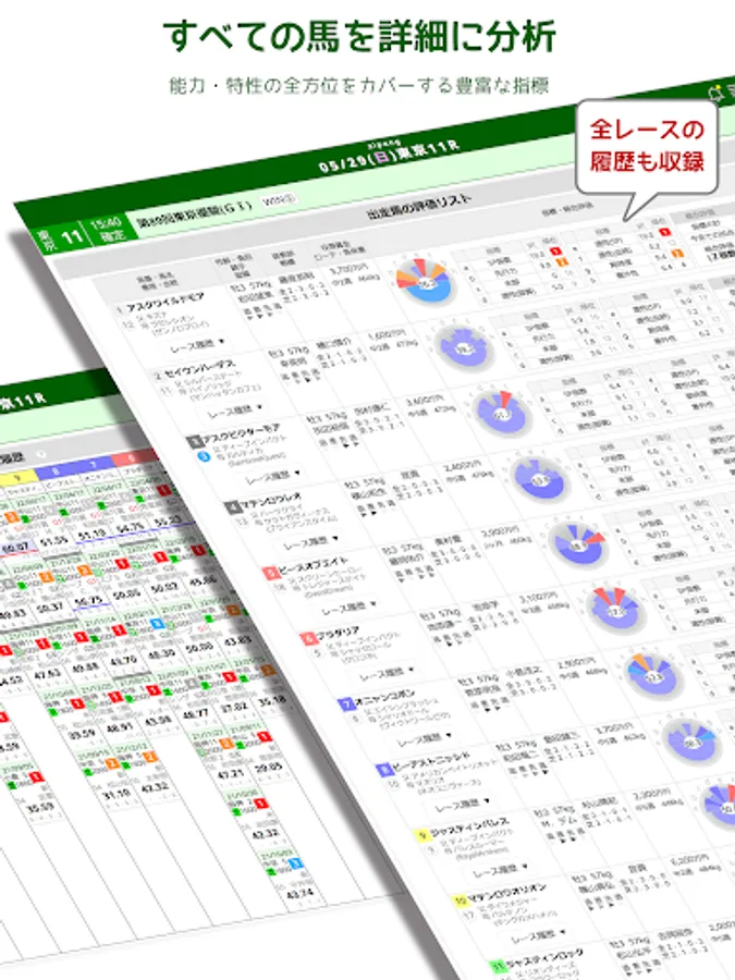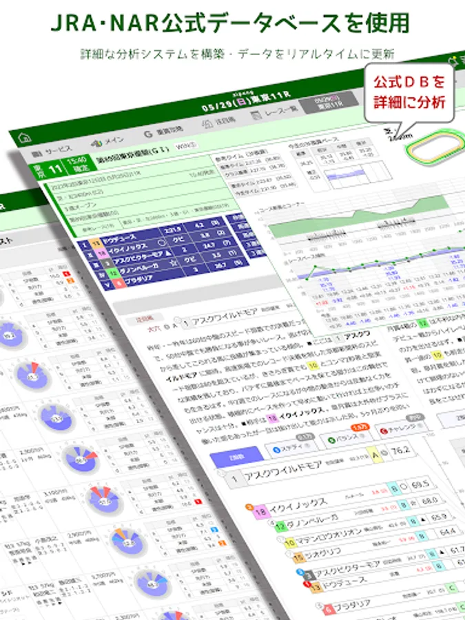 Formally contracted to use the official DB of JRA/NAR. We collect and analyze past race results in detail from all angles, and aggregate over 200 indicators for each running horse.