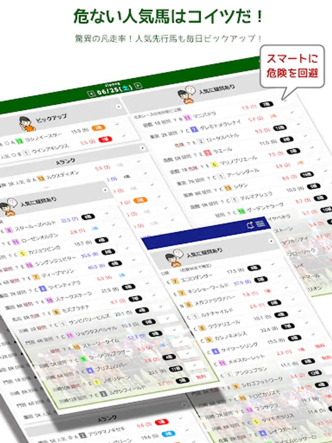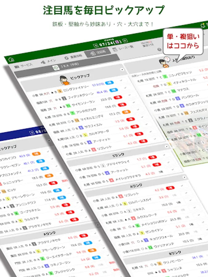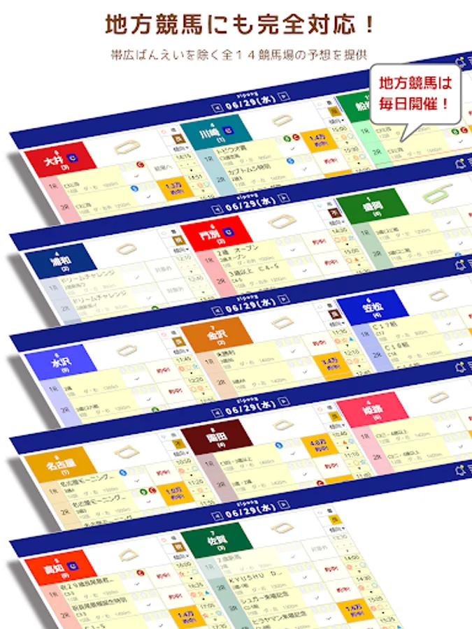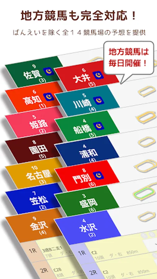 Fully compatible with local horse racing! We provide forecasts for 14 racetracks excluding Banei.
