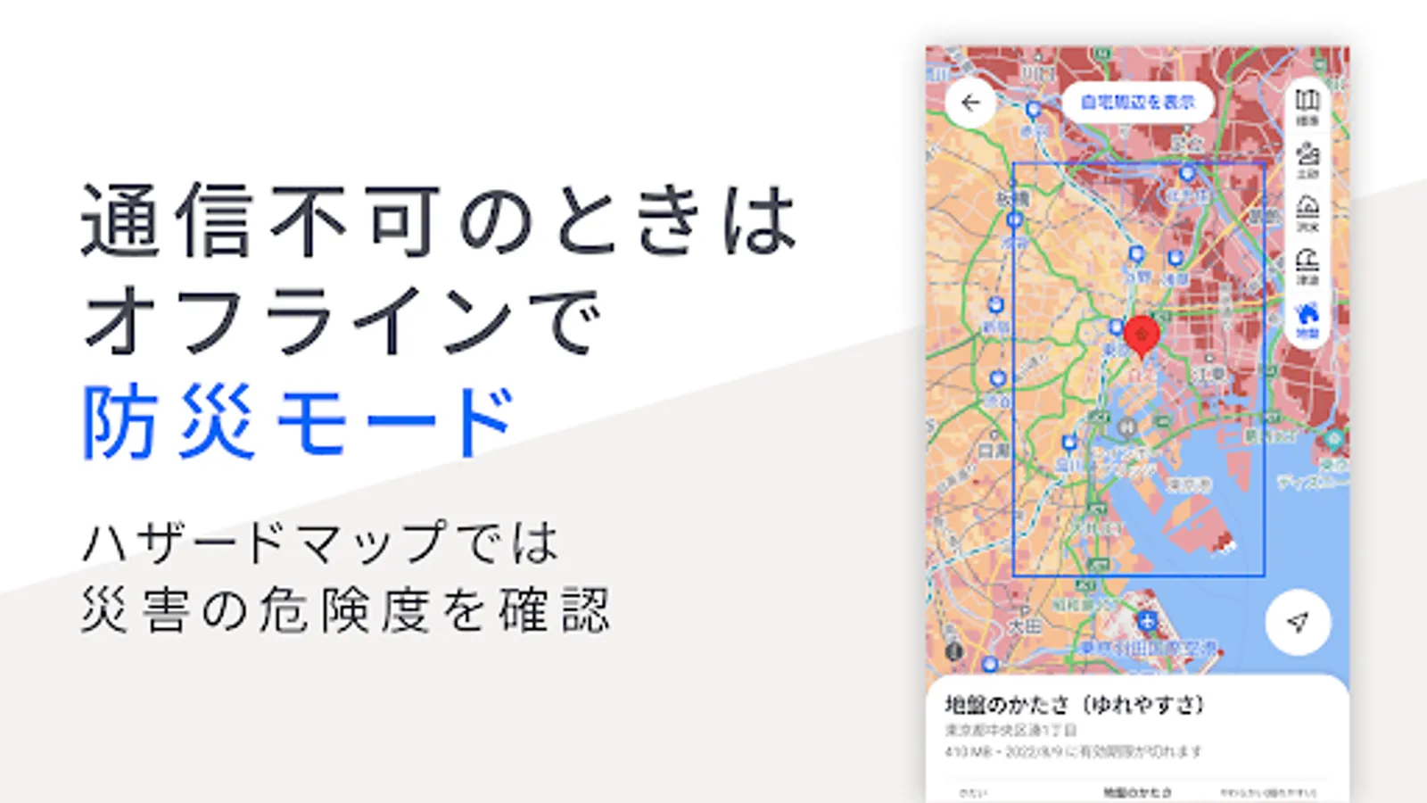 ・Safe even in case of communication failure. You can use offline maps of your home or work area. (Advance download required)