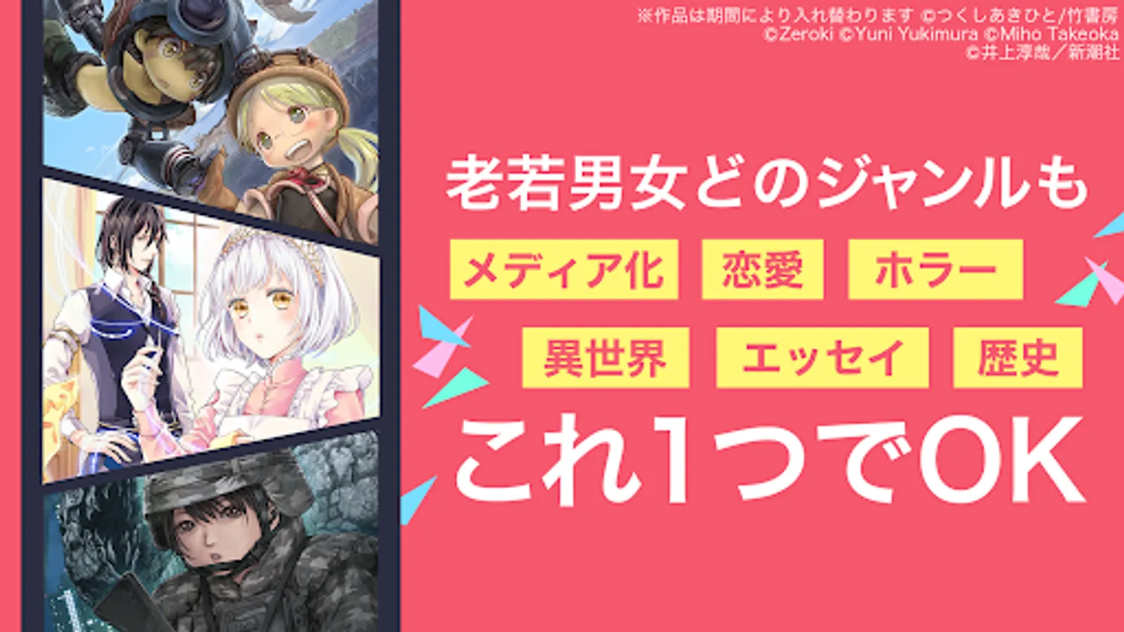 Lots of original serials, all-you-can-read works, and popular and latest manga, books, and comics that you won't find in other apps!