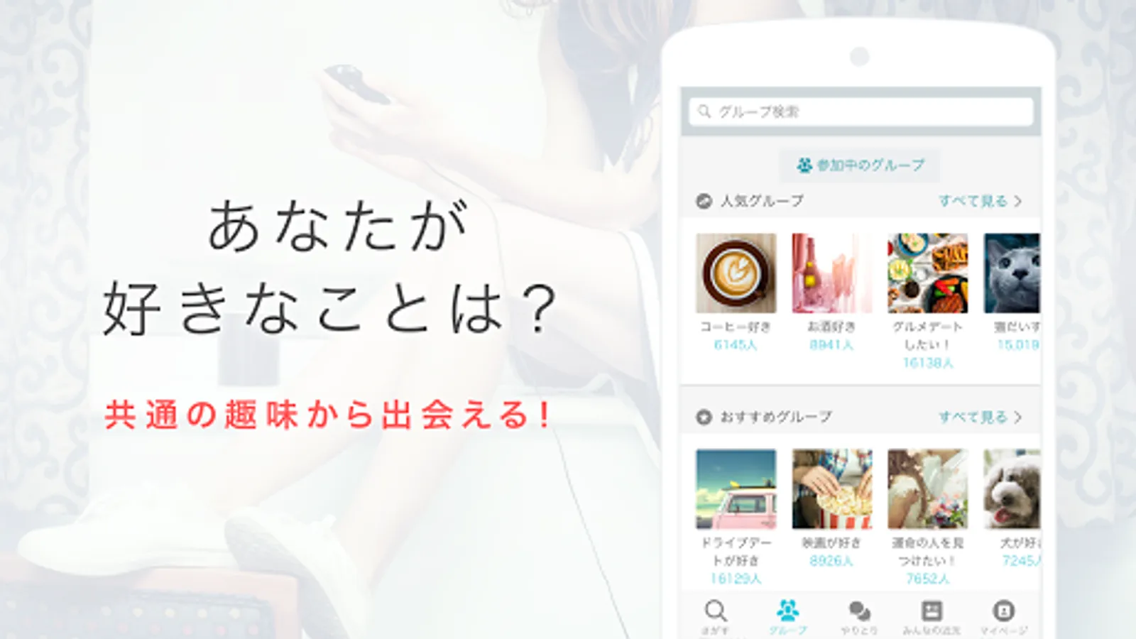 Just by joining the group, you can appeal your hobbies such as music, sports, manga, games, movies, activity status and preferences such as "looking for a lover", "want to get married", "long distance OK".