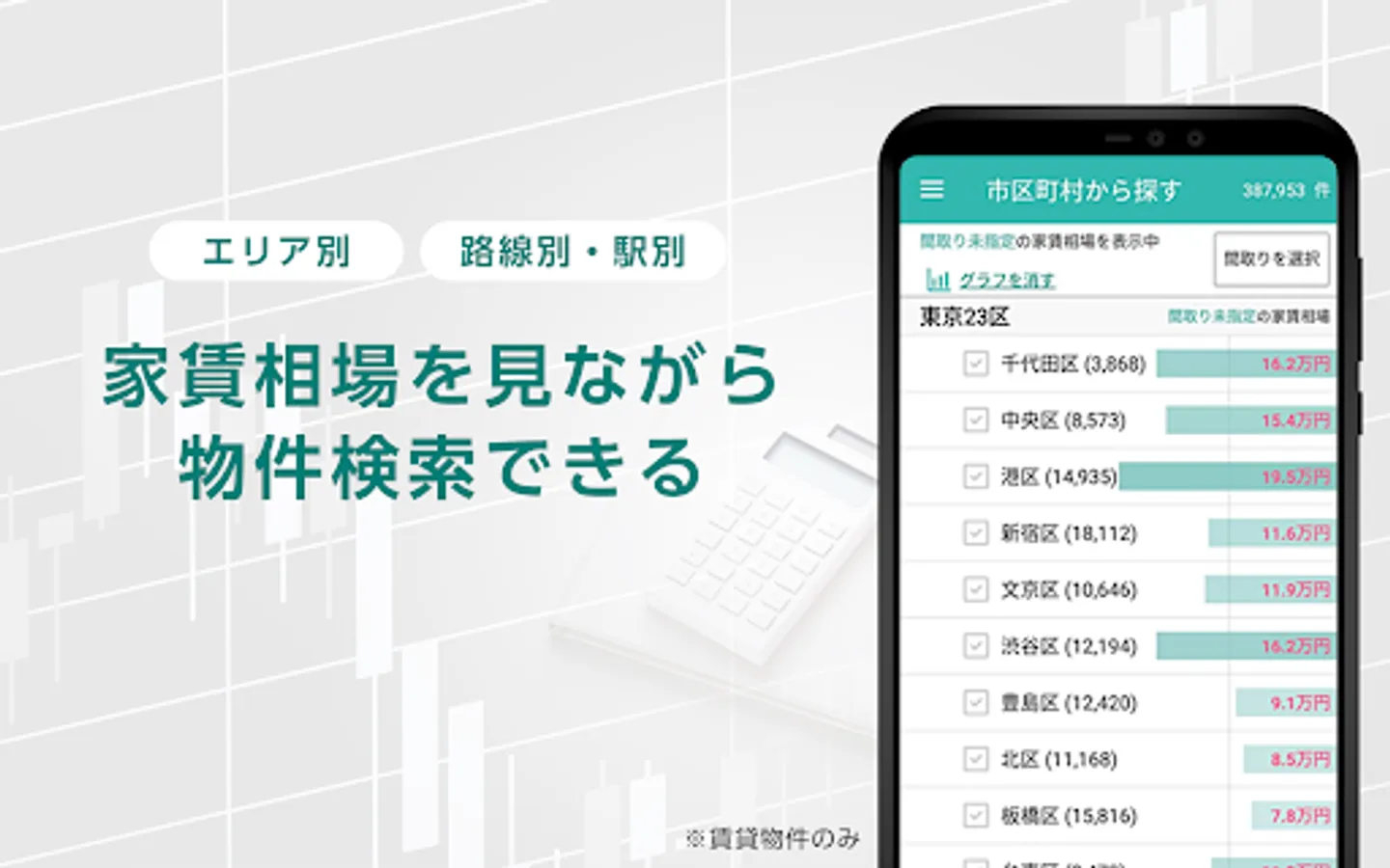 You can search by city/ward, by station, or by commuting time to work or school. It is also possible to set detailed conditions, so you can search for a room not only by rent and age, but also by features such as automatic locks and delivery boxes.