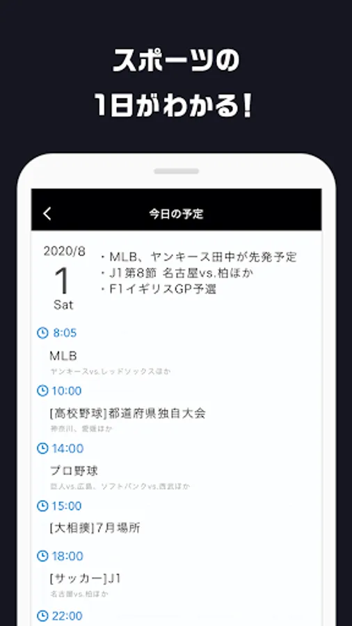 ・You can check the schedule for today, tomorrow, and yesterday. Never miss a hot match or event.