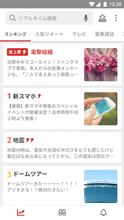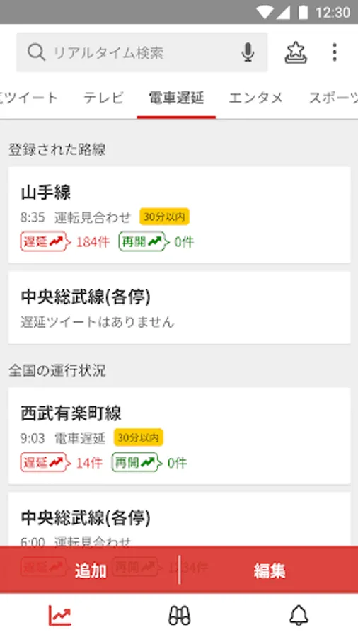 If you register words that interest you, such as the latest weather information such as earthquakes, heavy rain, and typhoons, information on train delays, and traffic congestion, you will be notified in real time when the number of tweets increases.