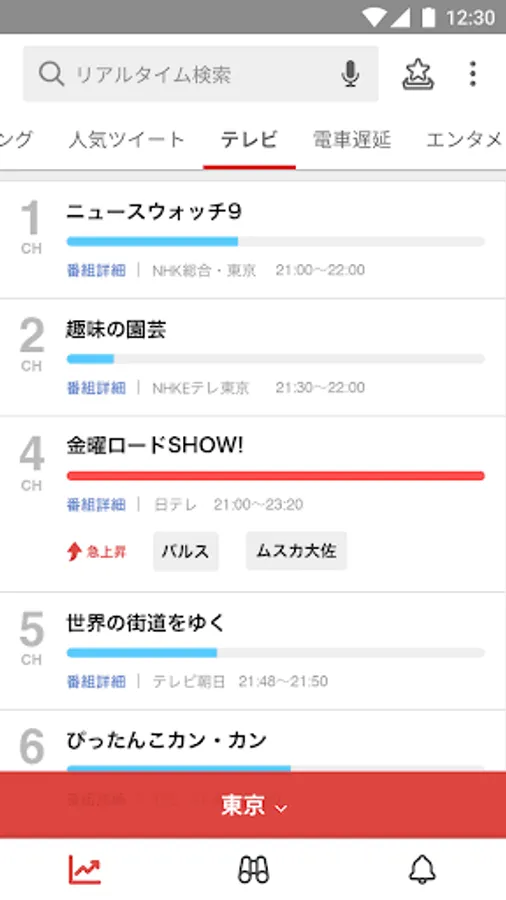 You can see how people are reacting to each TV program on Twitter, such as popular dramas, baseball sports commentary, anime, music programs, variety shows, and news programs.