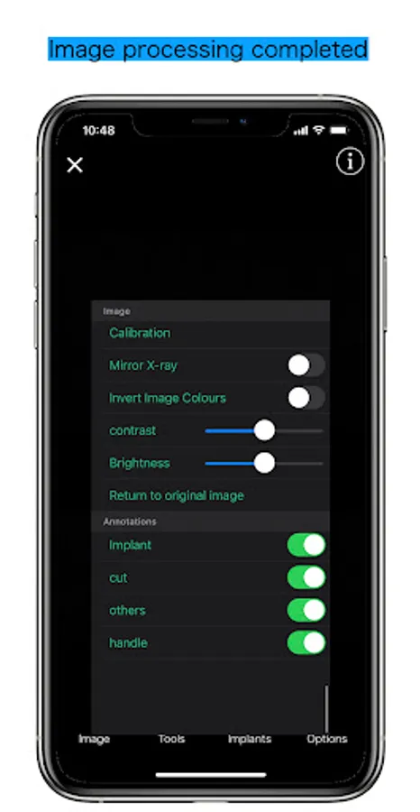 Image processing, including calibration, can be done in the app