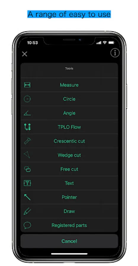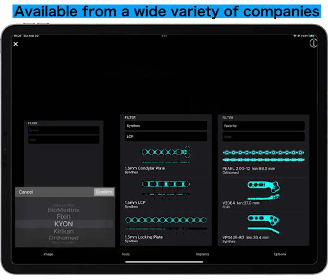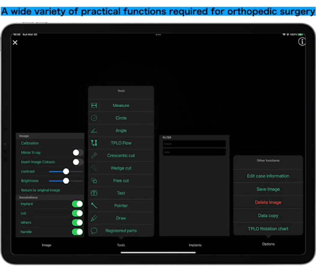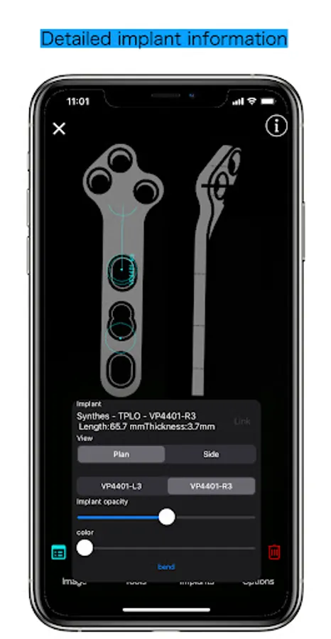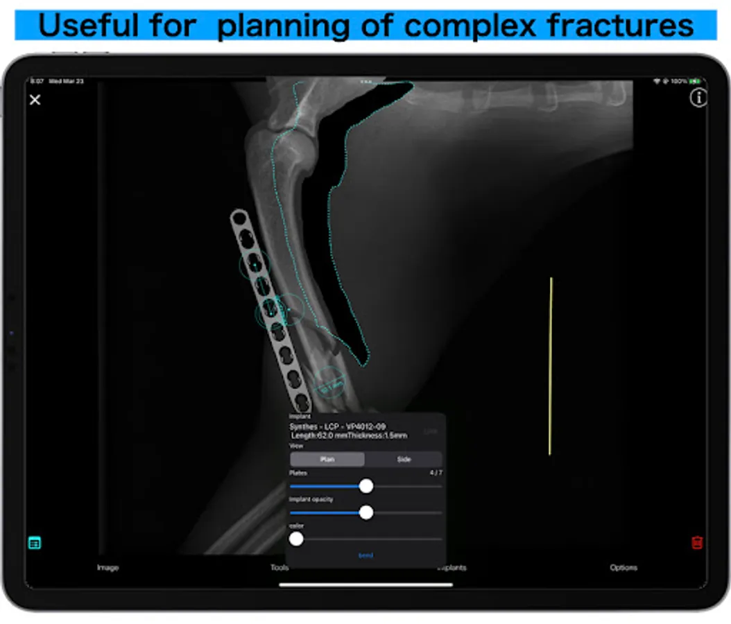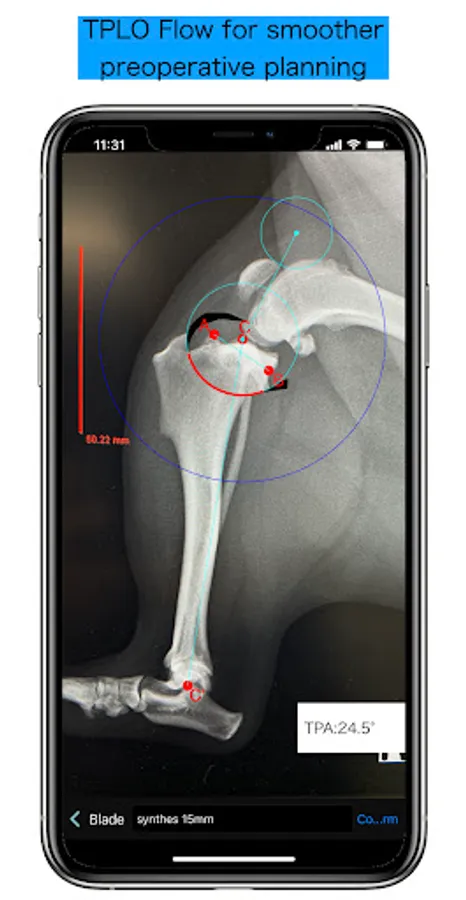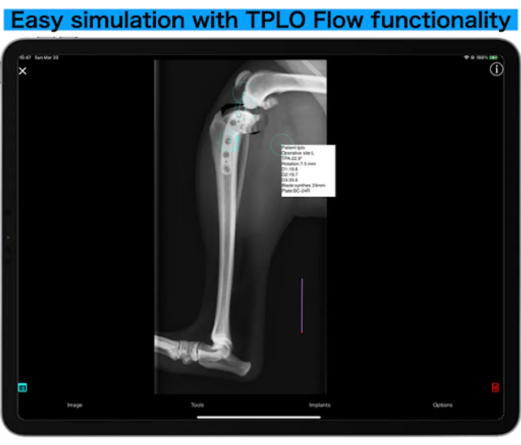 Pre-operative planning using various tools and plates, and explanation of the procedure to the owner, all with a single app.