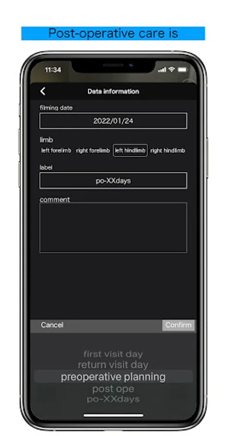 If the date of surgery is registered in the case information, the number of post-operative days will be automatically calculated and displayed when the XX post-operative days are selected with a label.