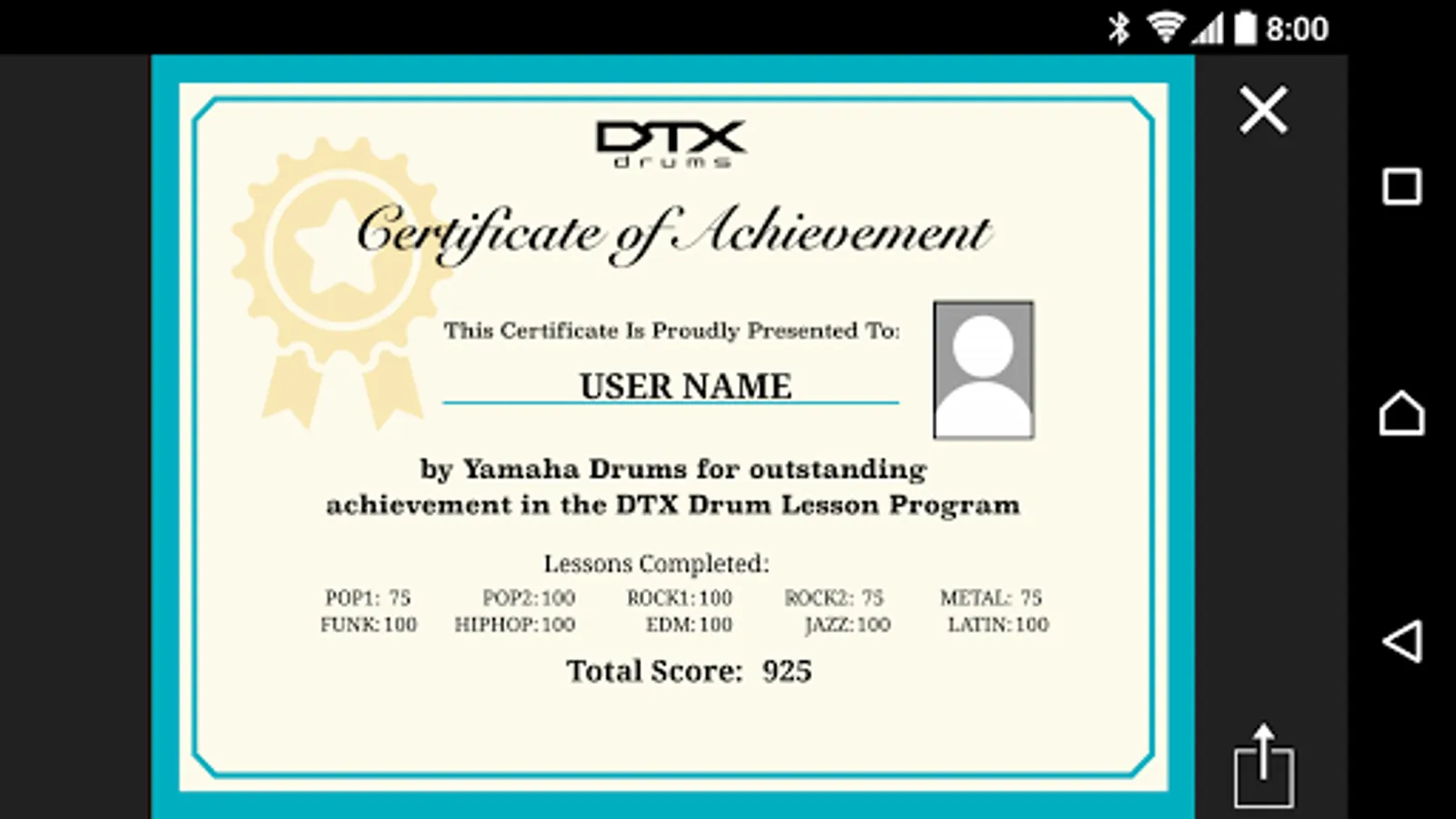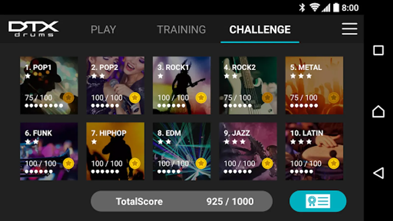 “Challenge Mode” is a new function on the DTX402 Touch that tests your skill. If you can play all 10 practice songs without making a mistake, you will receive a “Drummer’s Certificate” from the Yamaha DTX drum team that you can share via social media.