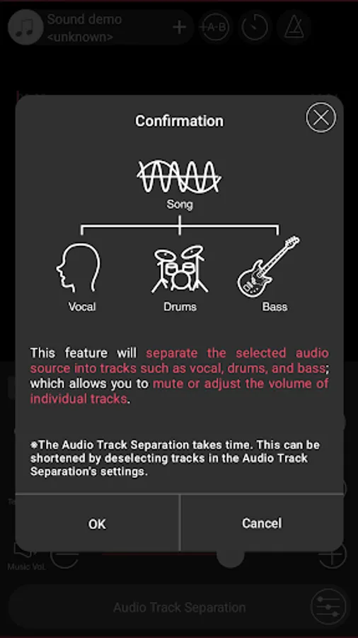The Audio Track Separation function, available in Version 3, allows you to adjust the volume of specific tracks (vocals, drums, bass, etc.) of your favorite songs.