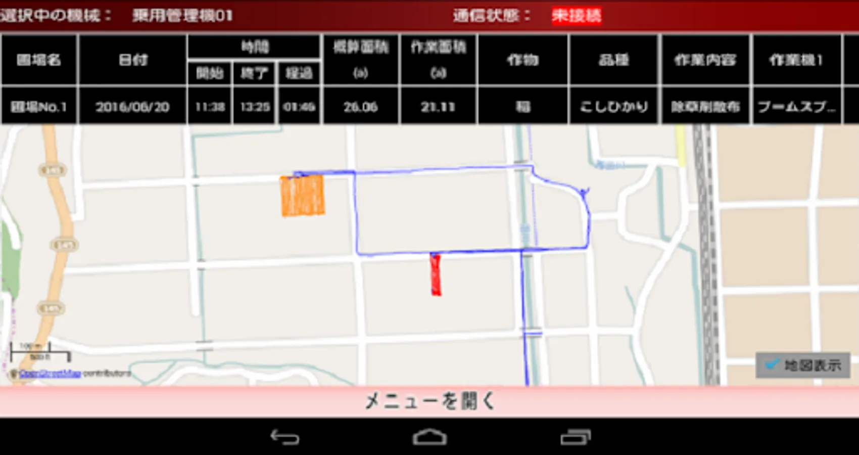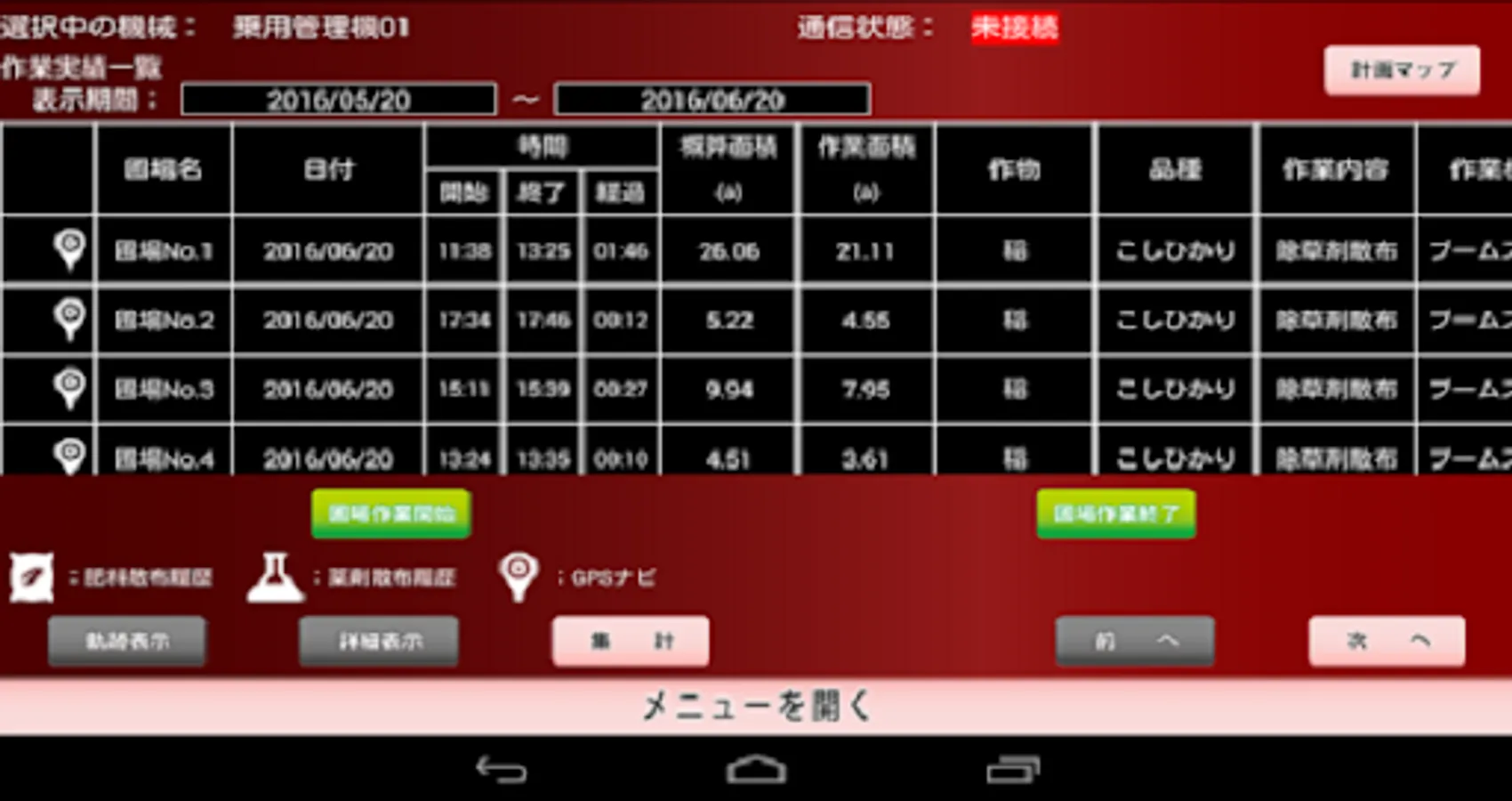 We will automatically acquire and display the list of daily farm work, the trajectory using the Internet map, fuel consumption and work time from the machine.
