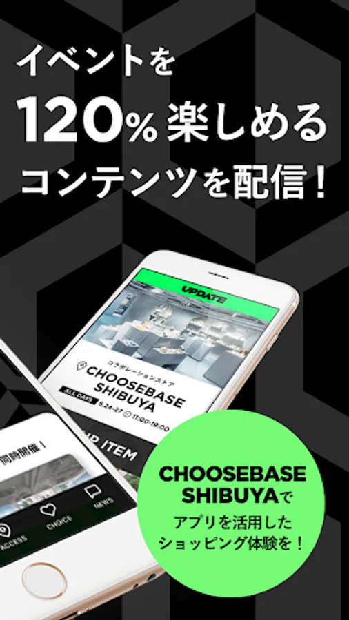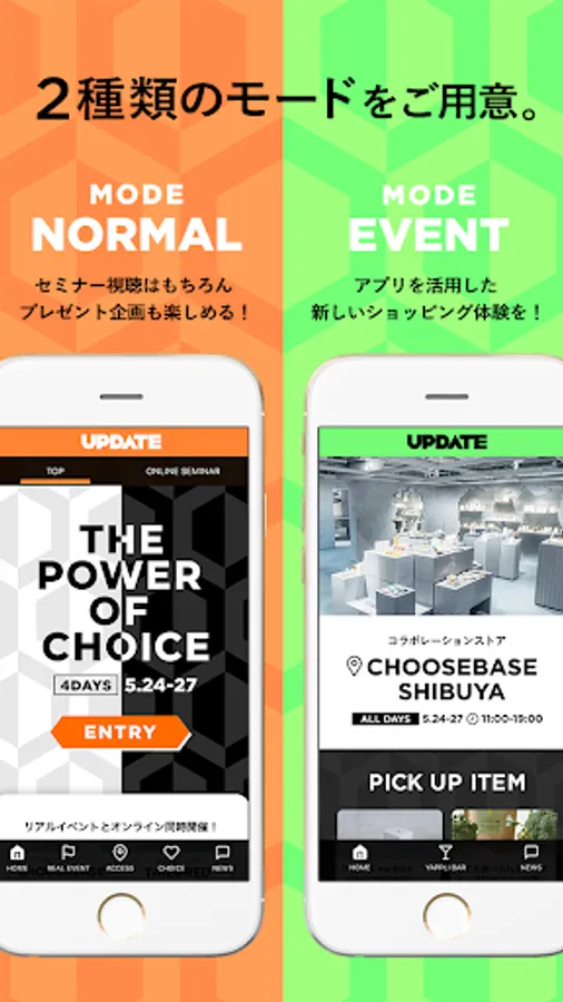 You can select "normal mode" where you can check and watch the seminar program and enjoy online shopping at CHOOSEBASE SHIBUYA, and "event mode" where you can use it at CHOOSEBASE SHIBUYA stores.
