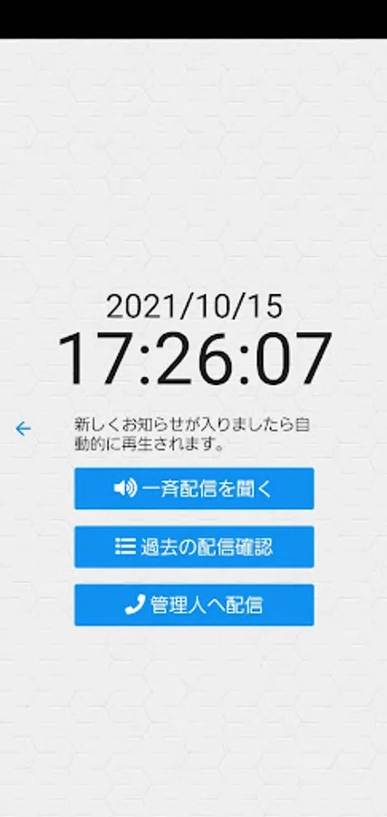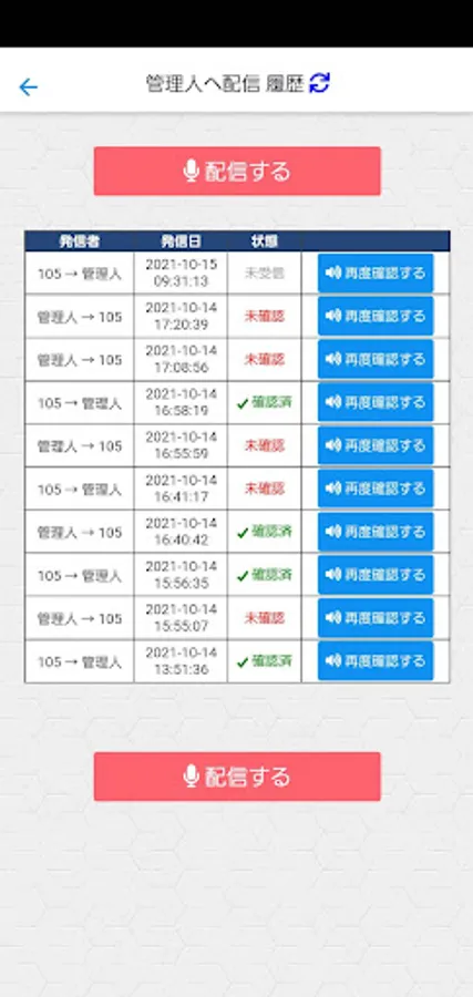 It is an application that distributes audio and images from the administrator to the residents of the apartment all at once, and you can also see the distribution status on your smartphone or tablet. Two-way communication is also possible with the individual delivery function. 1. You can see "confirmed", "heard, seen", "not heard, not seen". I understand. 2. You can listen to it again, so you can check the content as many times as you like. If you have heard it but don't understand it, you can play it as many times as you like. 3. You can pick up anywhere You can play and reply on your smartphone even when you are out.