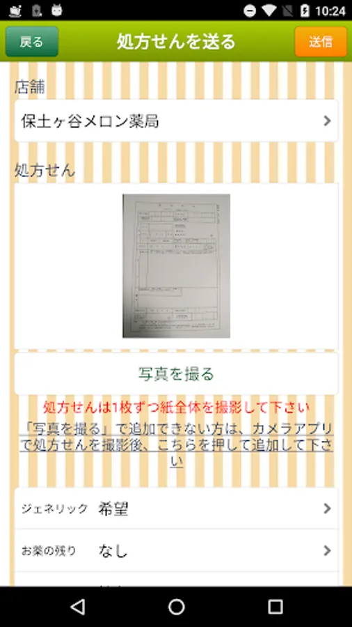 You can shoot prescriptions received at hospitals and clinics and send them to the melon pharmacy from the app. We will contact you by phone or e-mail when your medicine is ready, so you can receive it without waiting.