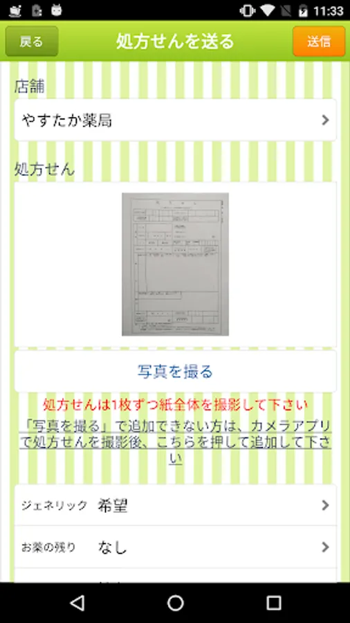 You can take a picture of a prescription received at a hospital or clinic and send it easily from the app to a pharmacy store. When the medicine is ready, we will contact you by phone or email, so you can receive the medicine without waiting.