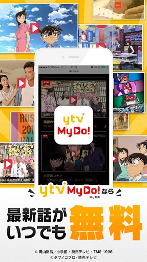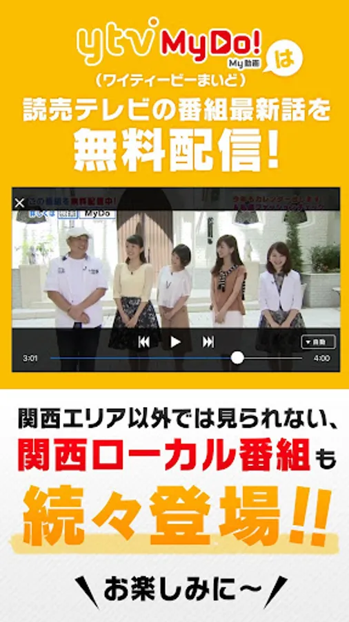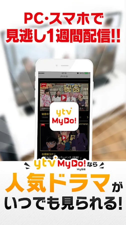 "Ytv MyDo! (Every time)" is, the Yomiuri Cartoon TV drama, variety shows, a personal computer, smartphone, tablet, anywhere at any time, you can watch for free. Enjoy the viewing style of the new TV in the "ytv MyDo!"! !
