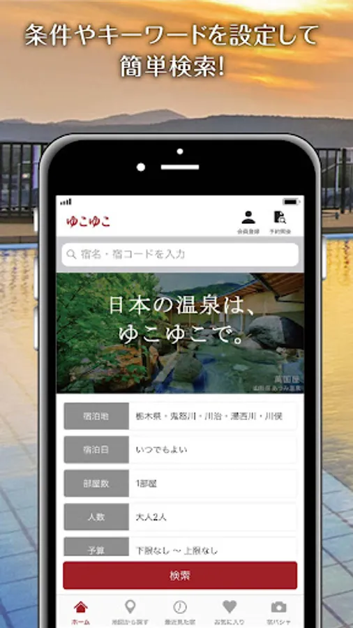 この温泉・宿検索アプリで、素早く温泉・宿予約が実現できます!
