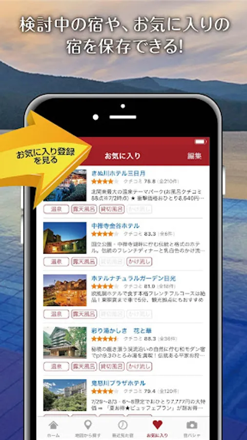 気になった宿をお気に入り登録しておくと、あとからでも詳細をチェックできます。その他にもお気に入りの編集もできるので、行きたい宿のリストを自由に作ることができます。