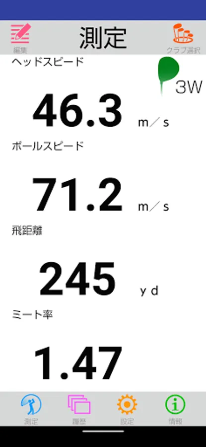 -The head speed, ball speed, estimated flight distance, and meet rate measured by GST can be displayed.