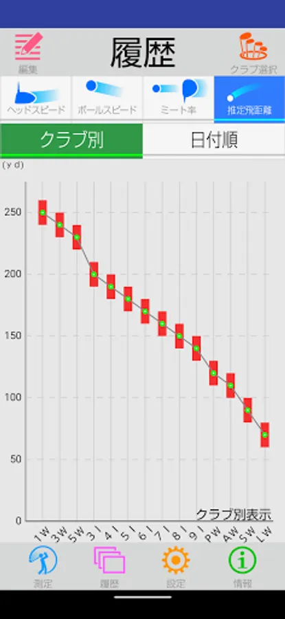 By graphing the swing data, you can know the difference in flight distance for each season and the club number that you are not good at, which is useful for swing practice.
