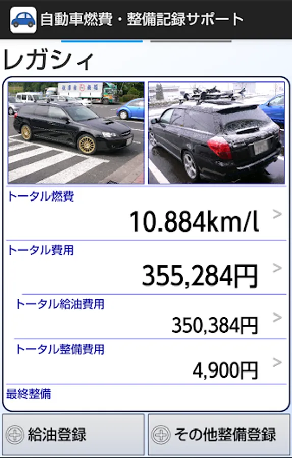 ・トップ画面にトータルガソリン費用とトータル整備費用を表示するようにしました。
