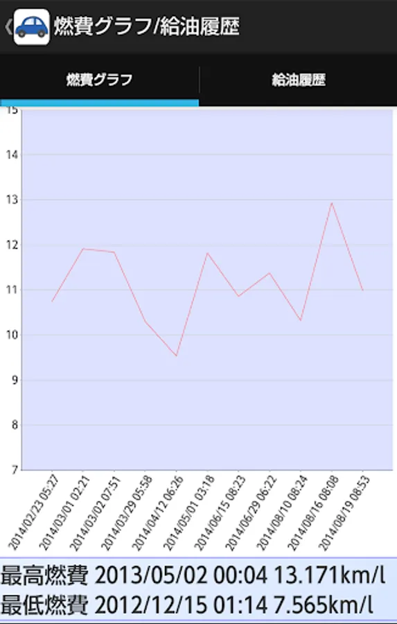 ・グラフ画面に最高燃費の日・最低燃費の日を表示するようにしました。