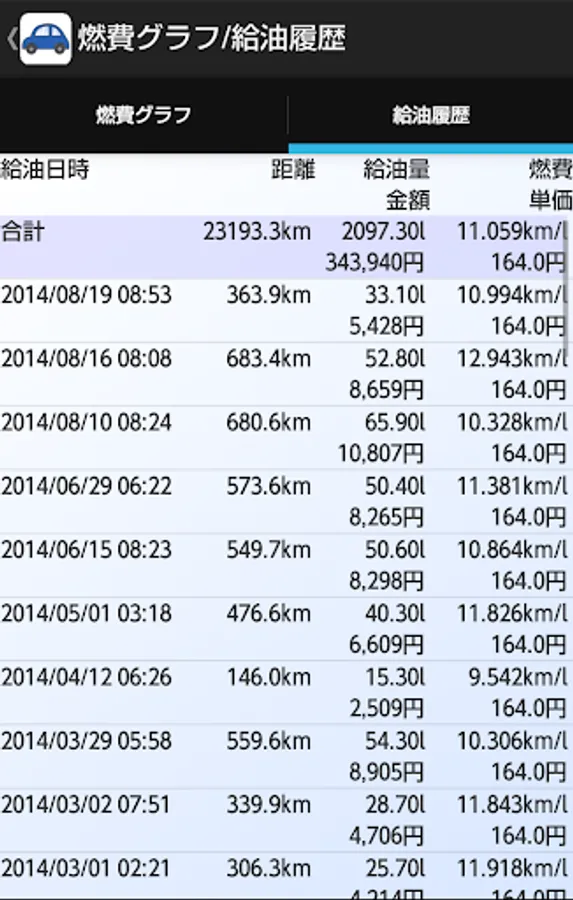 ・燃費のグラフと給油履歴をタブで分けました。