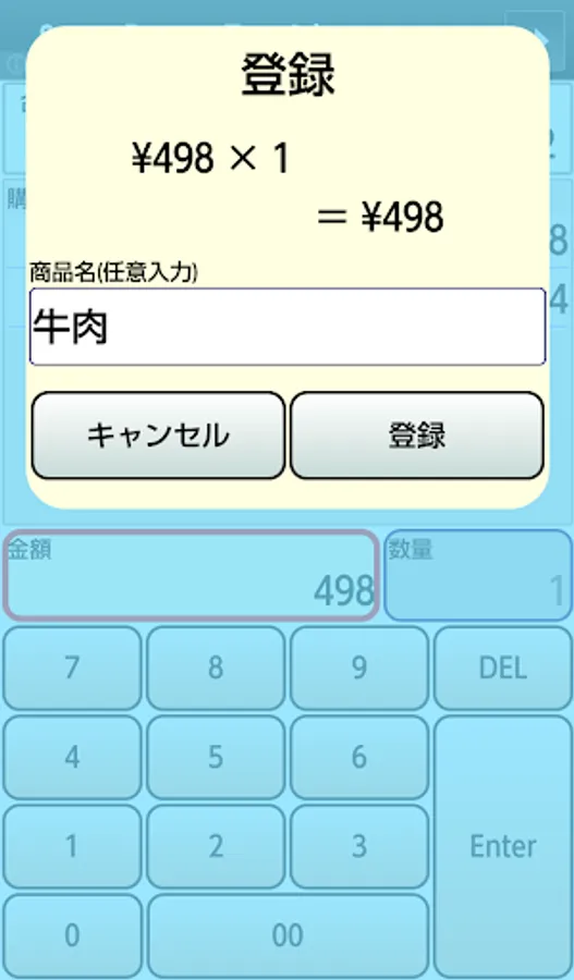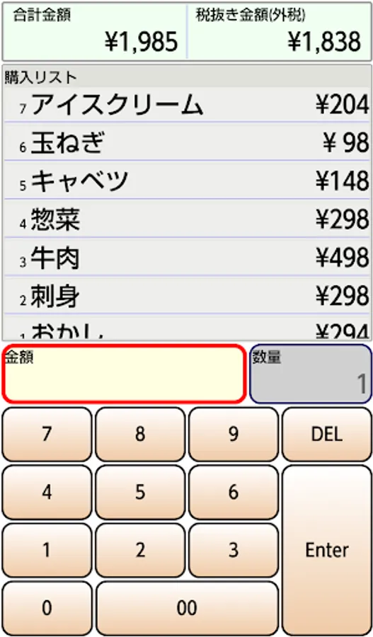 1.金額と、必要であれば数量を入力し、Enterボタンを押します。