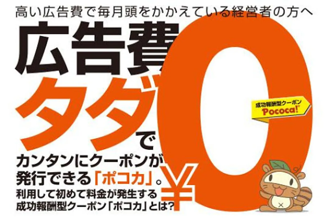 Pokoka coupons is "pay-per-coupon", display, or only been acquired ad spending does not occur. Actually users to visit, do not take at all wasteful expenses because the first time advertising costs will occur by using the coupon.