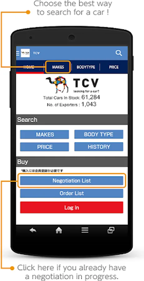 With TCV App you can search for and purchase your car smoothly.