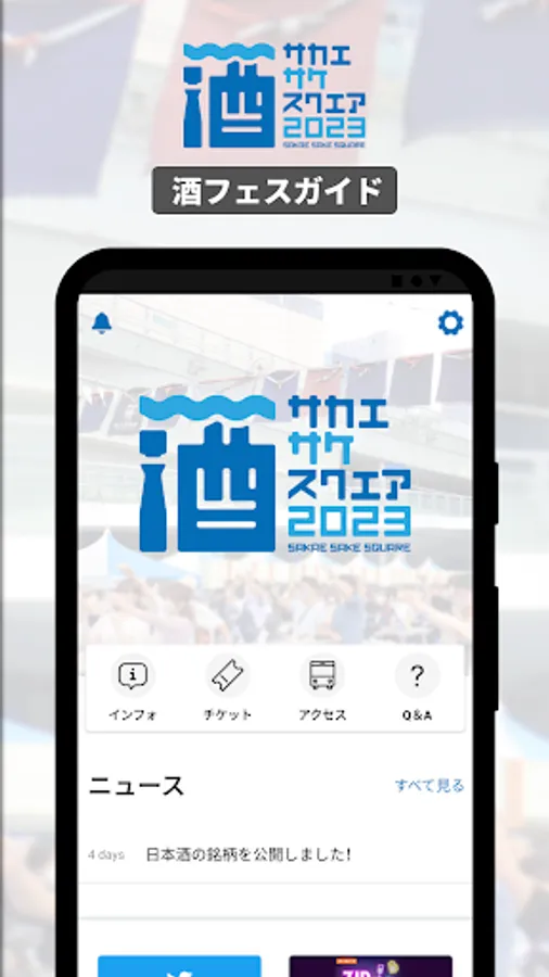 The official guide app for sake events hosted by ZIP-FM, such as SAKAE SAKE SQUARE2023.