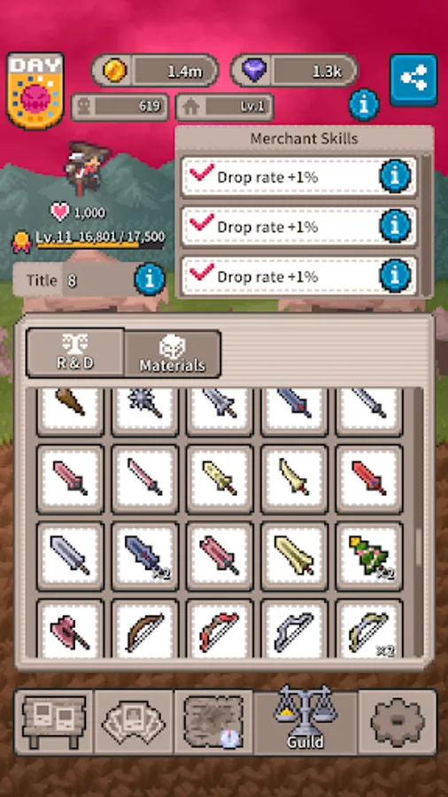 During battle, the player themselves has no means of attack. Your companions will automatically fight for you. There are various types of guards, so you can organize your party according to the route you choose to explore. You can even enhance the rarity of your guards by leveling them up or synthesizing them.