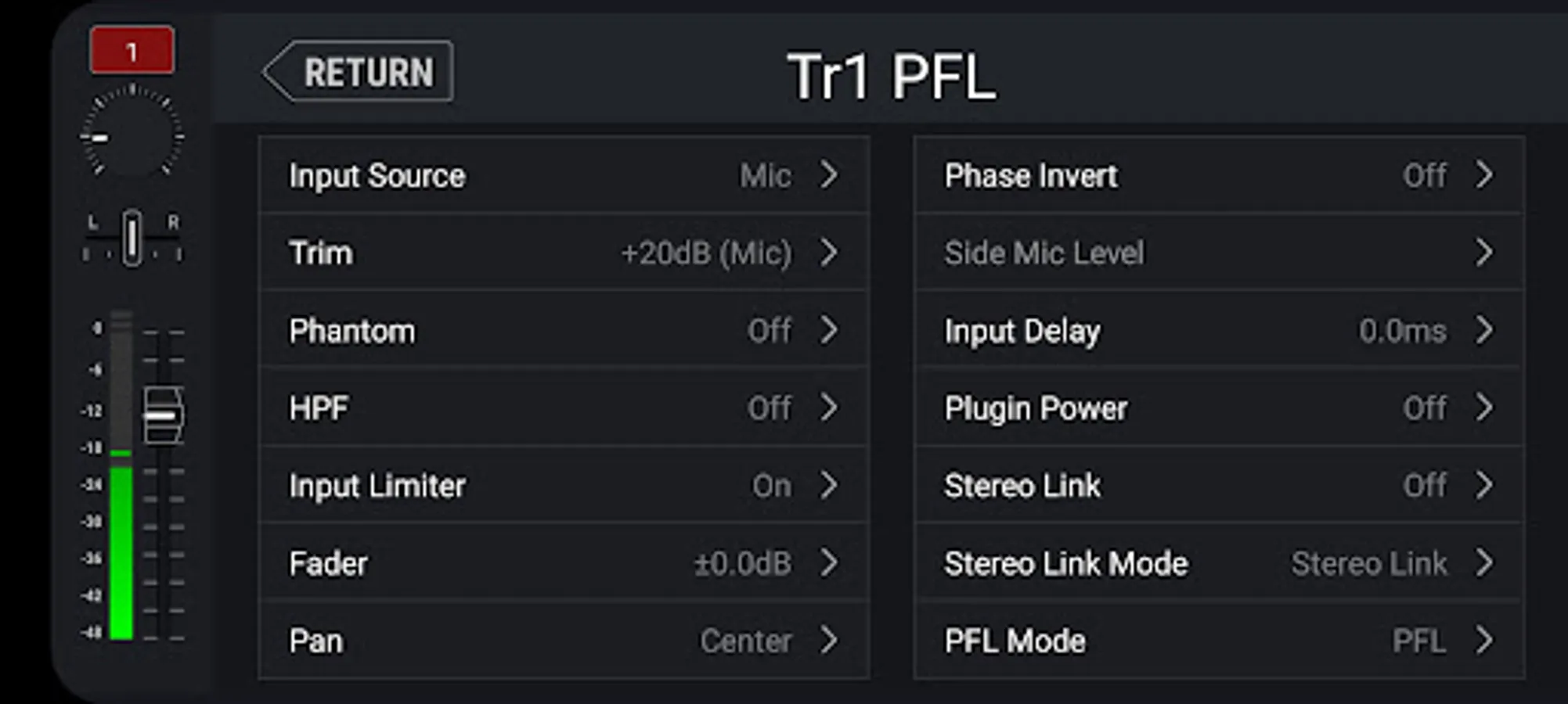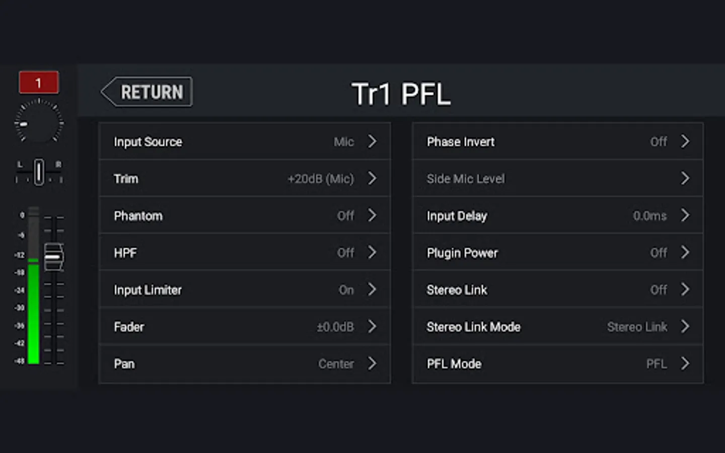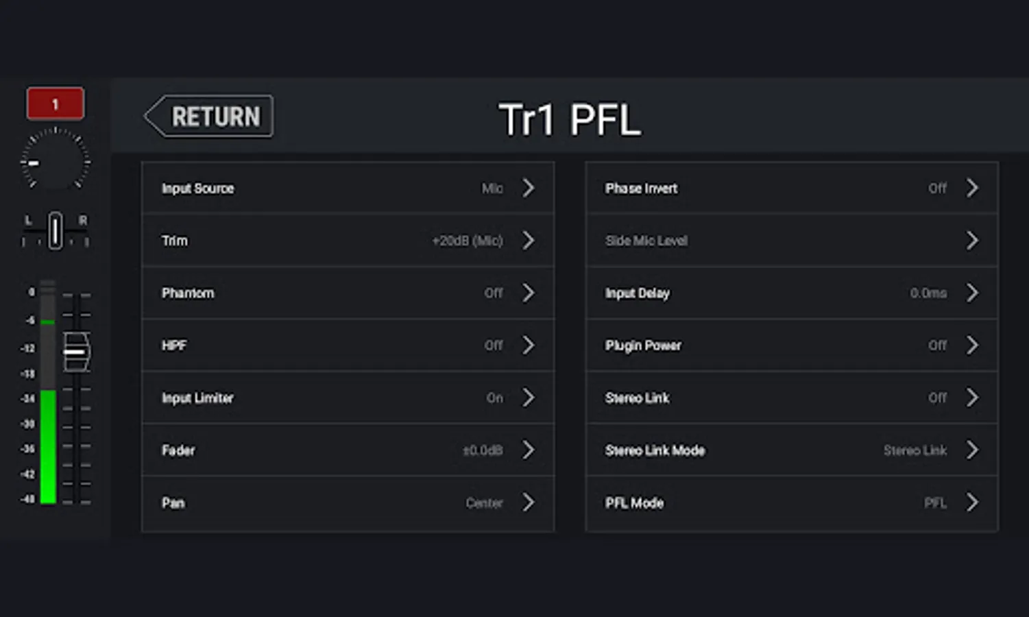 In addition to the fundamental operations of starting/stopping recording/playback and searching forward/backward, this app allows the adjustment of trim levels and mixer pan and fader settings.