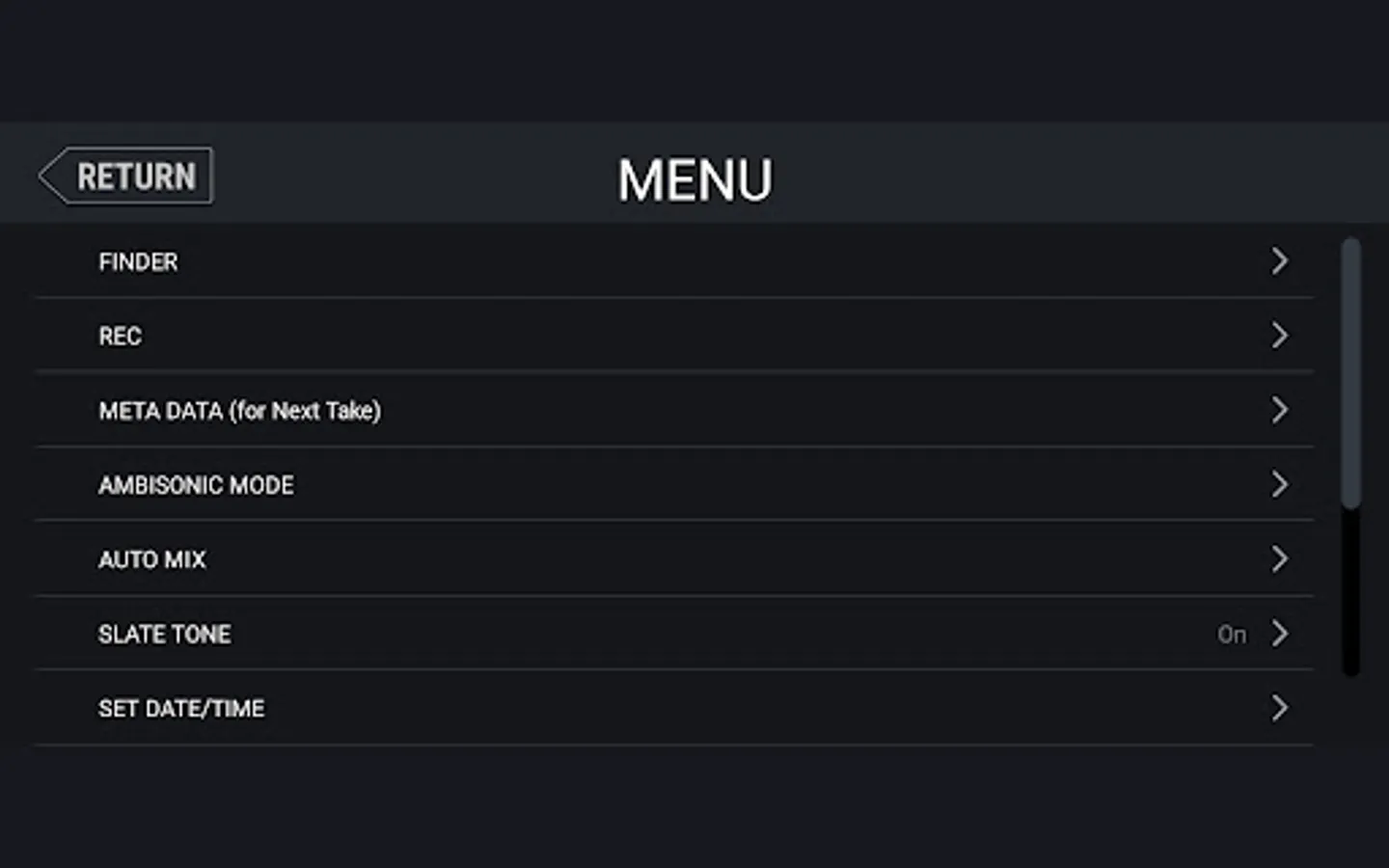 You can also use it to monitor input levels, timecode information and remaining battery charge.
