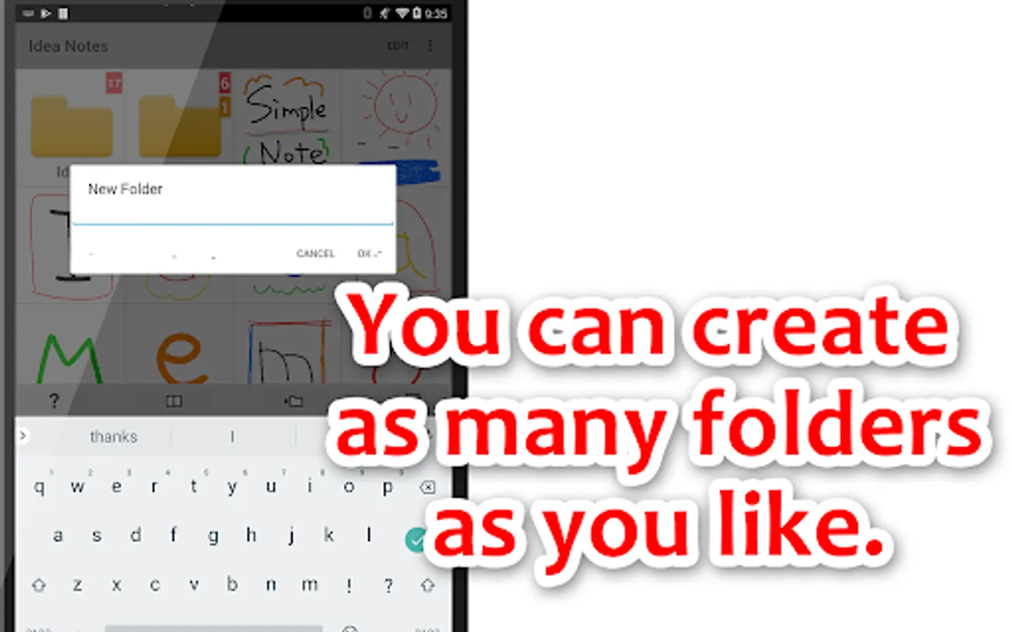 On the list view, you can sort by long press, organize into folders, and preview all notes.