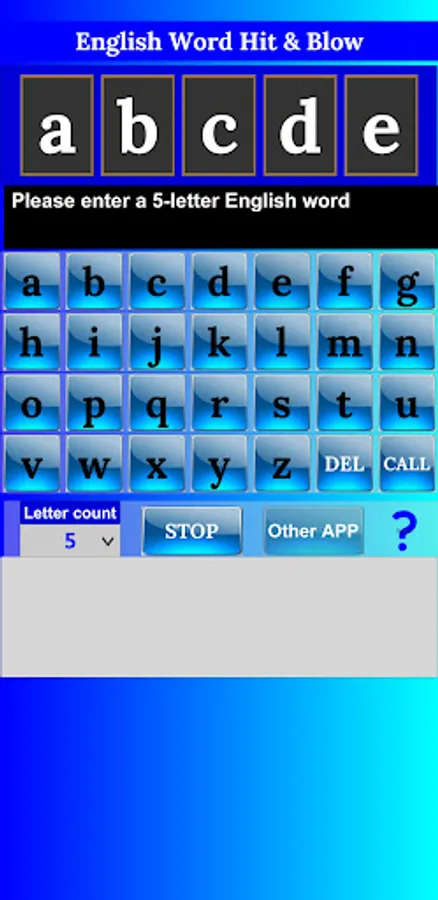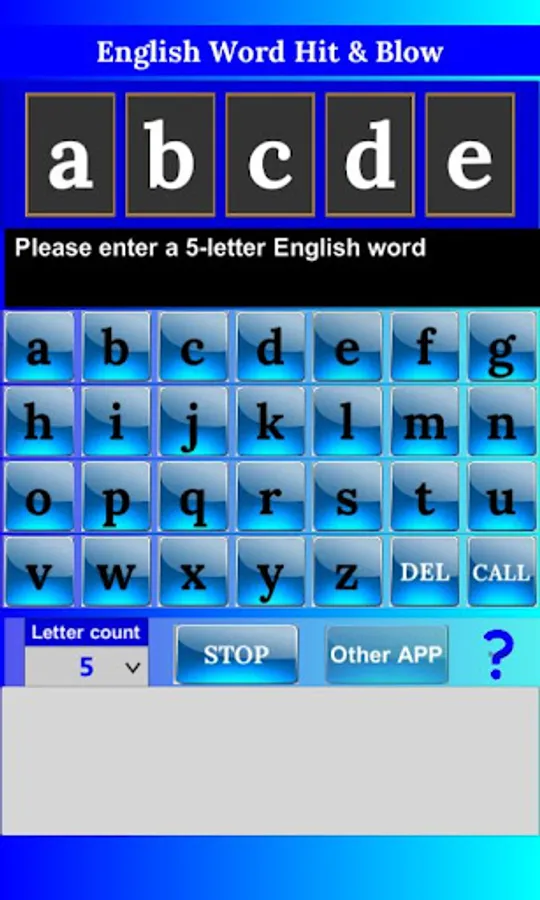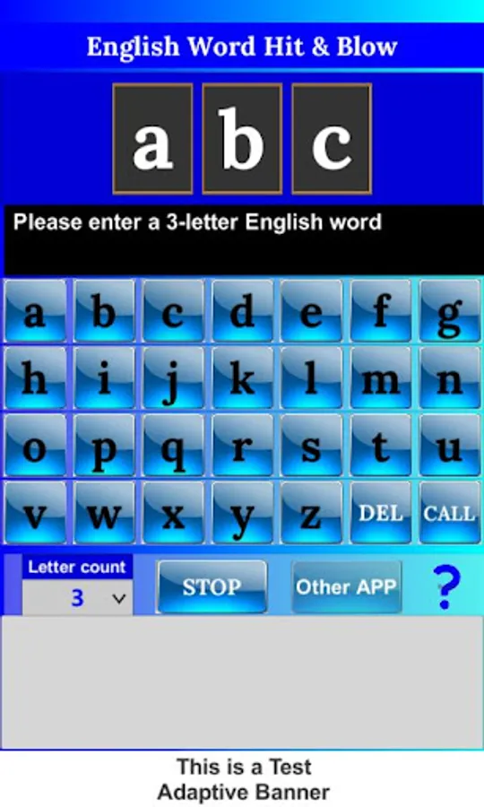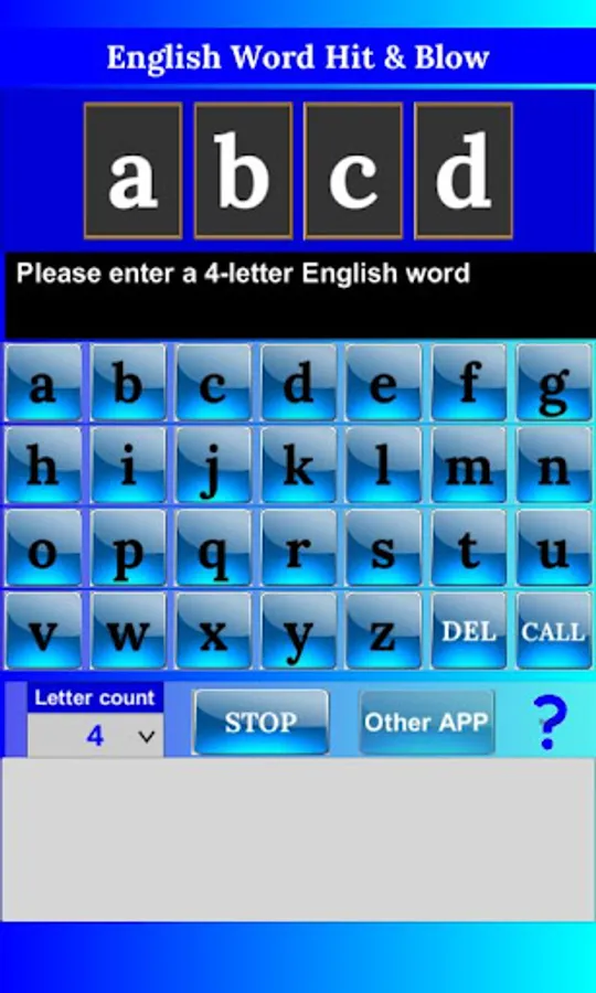 It is a game to guess a word of 3 to 5 letters randomly generated by the application. If the letters and positions match, "H"
