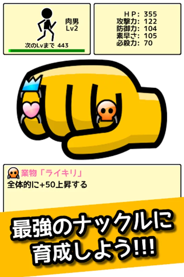 "Rental knuckle" is recommended at the beginning. Let's start from the meat senior. Next is around “flower knuckle”. The boss from Episode 8 has. After that, you will be able to make knuckles at level 8 of the flesh man, so make strong knuckles.