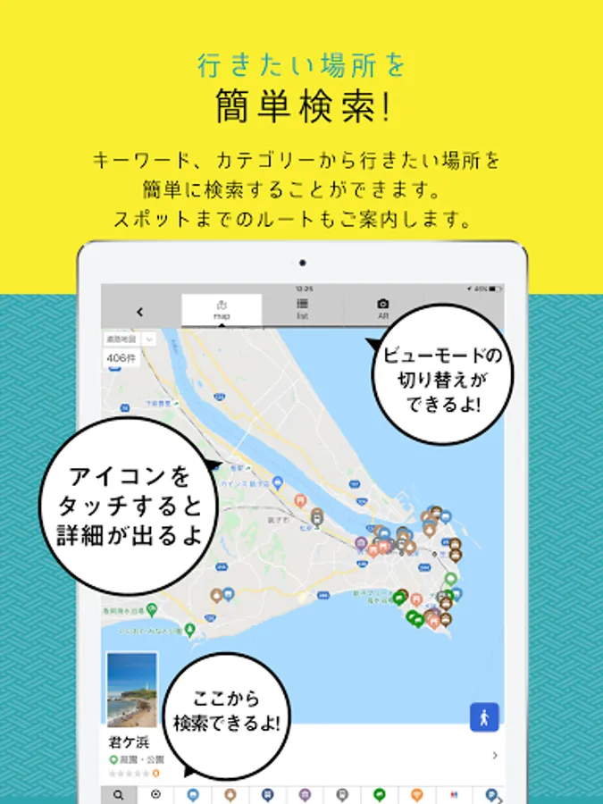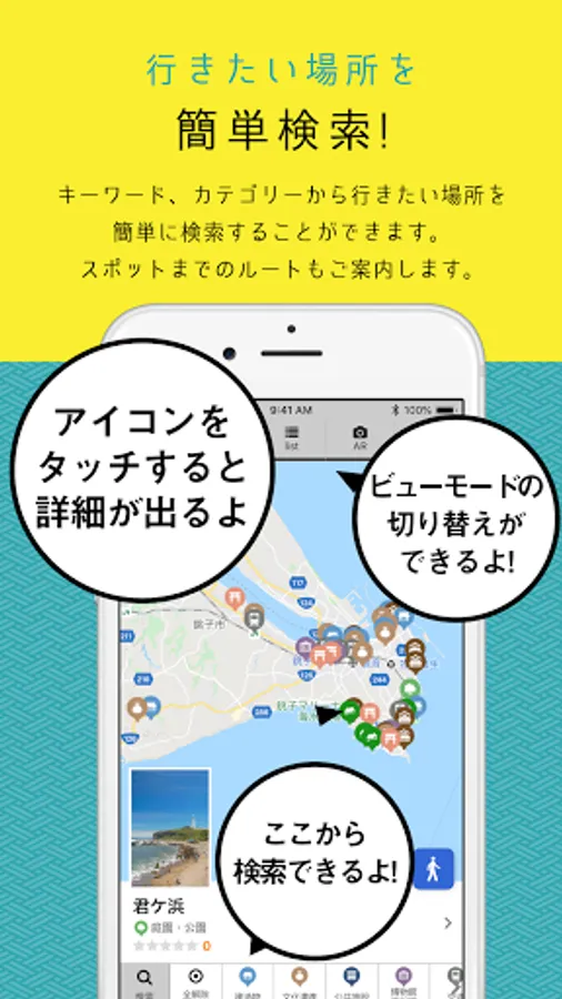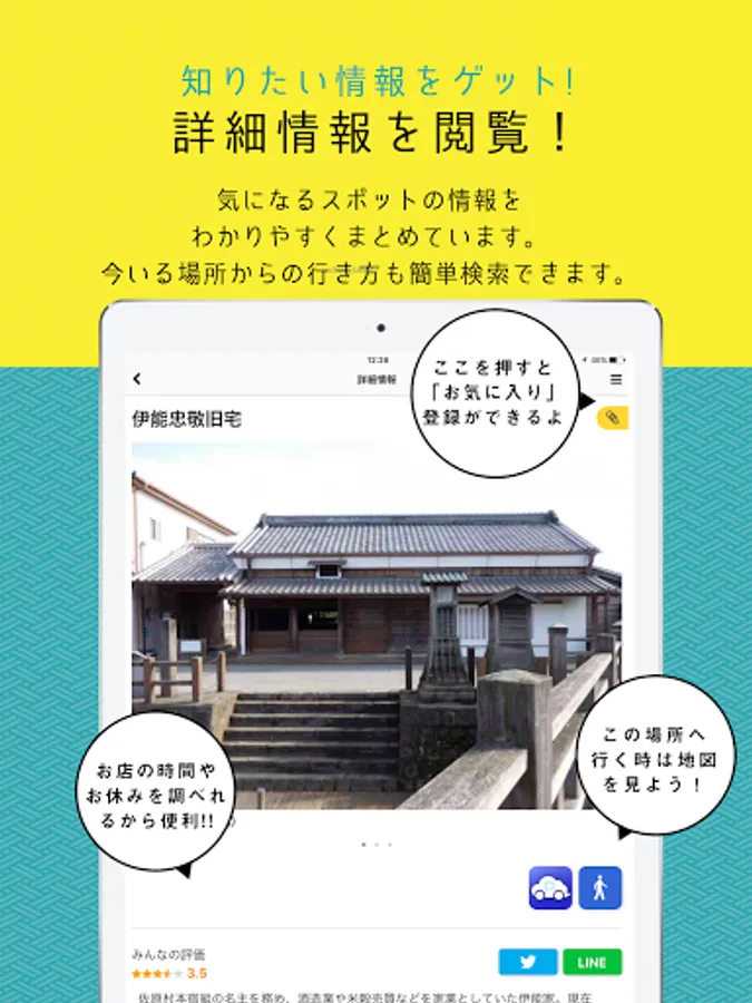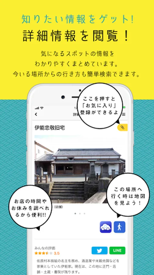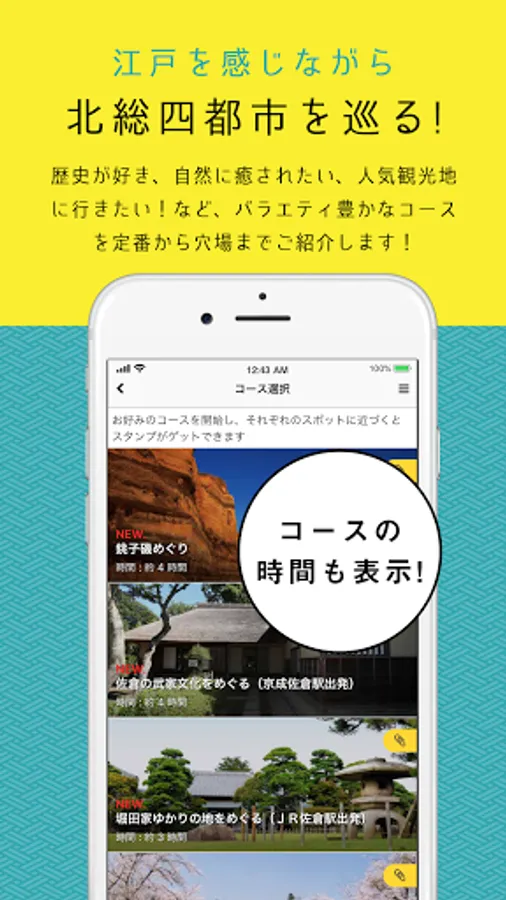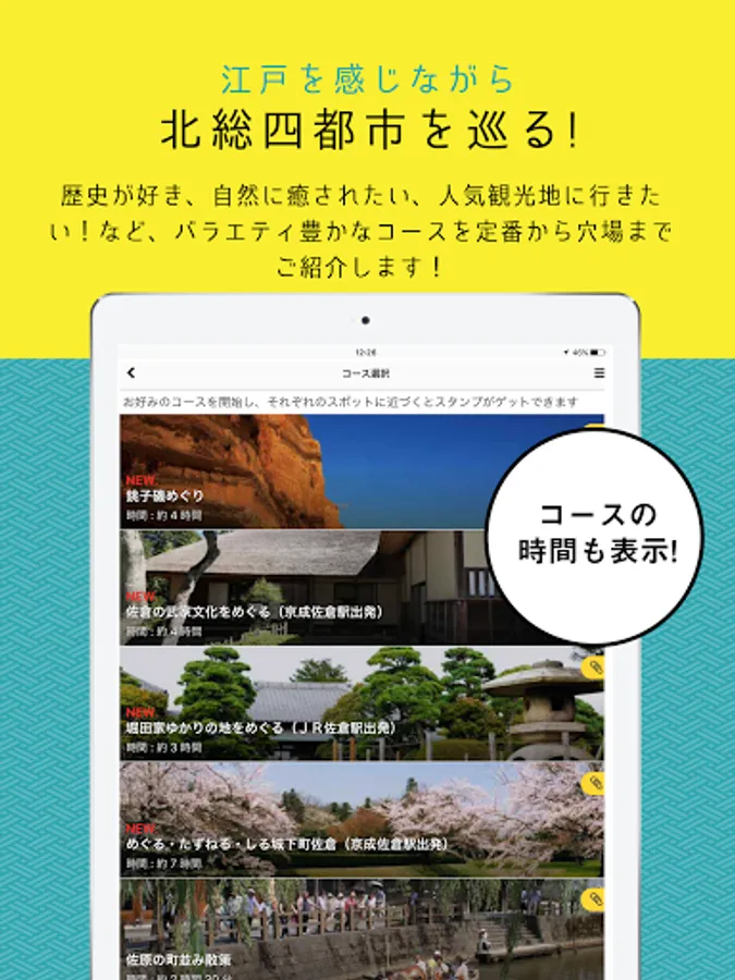 There are rich nature and many cultural heritage sites in the Four Hokuso Cities.The app provides the "Model Course" feature that introduces the route for each theme and the "Navi" feature to guide you to the sightseeing spots.