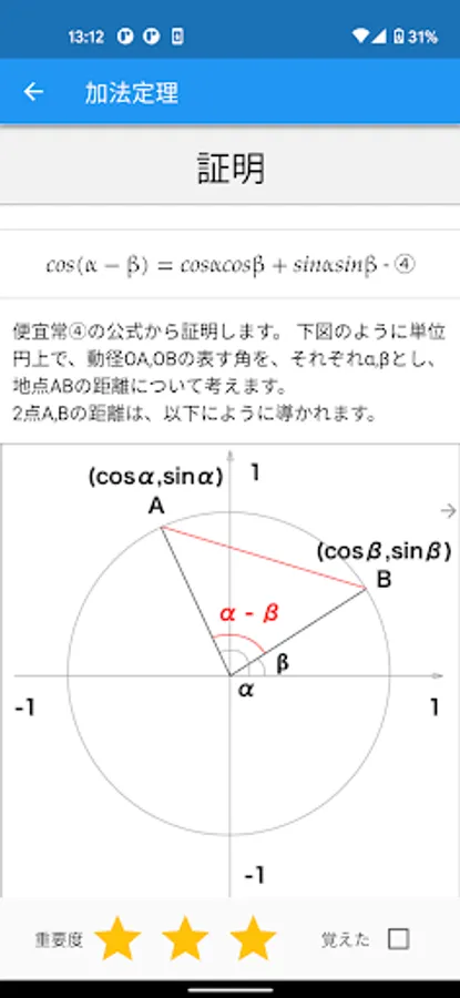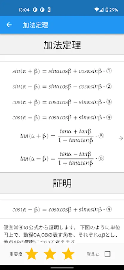 It is an application that allows you to memorize formulas used in high school mathematics based on proofs.