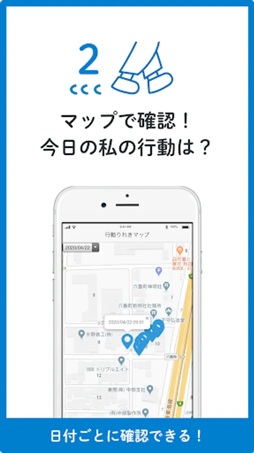 このアプリではスマホのGPSを利用して、行動履歴を保存することができす。