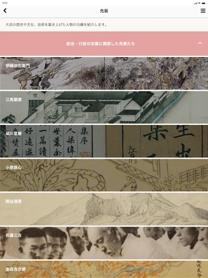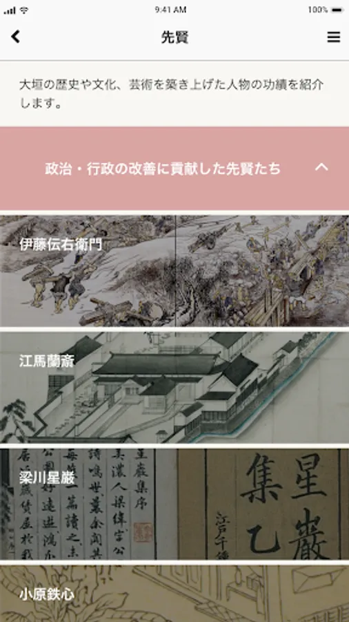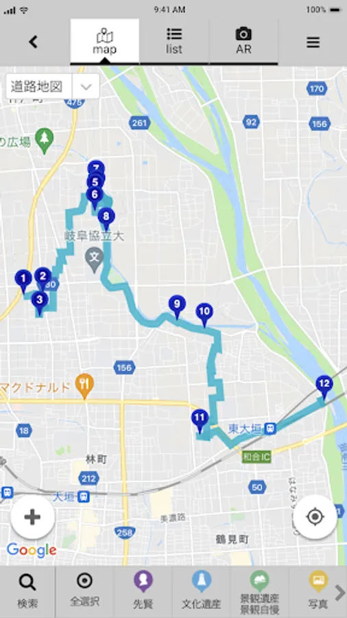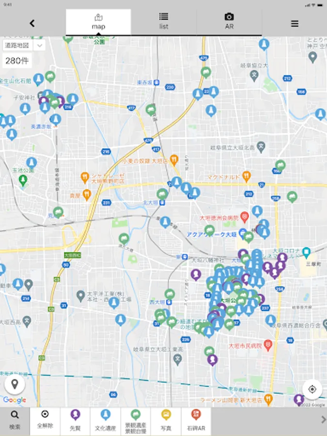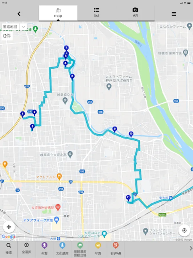 In this application, we will introduce these Ogaki heritage sites and guide you through the courses related to Ogaki heritage with the "model course function". It also has a "navigation" function that guides you to the desired point on a map or list. You can also use offline maps, so you can browse the maps even if you don't have an internet environment.