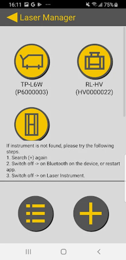 - After disconnecting Bluetooth in Laser Manager, the product icon may not be displayed on the search screen. Please wait for a while and enter the Bluetooth connection screen again.
