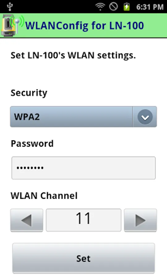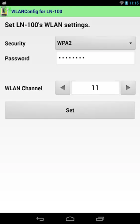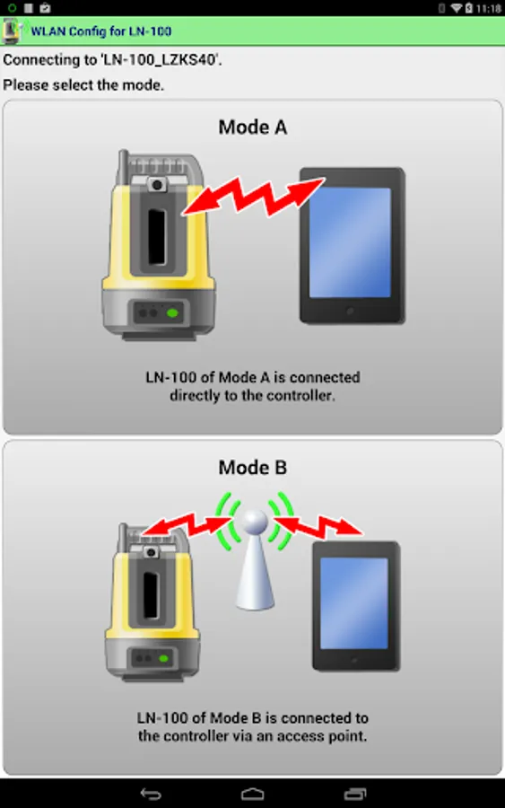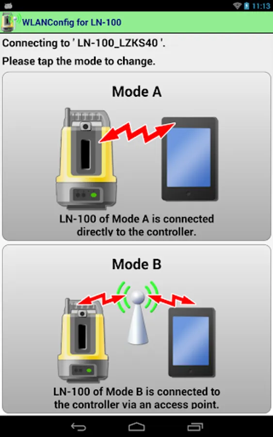 Layout navigator LN-100 communicates with a terminal using WLAN. This application can change WLAN settings of LN-100.