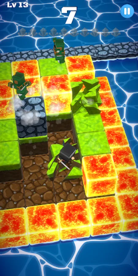 The landing blocks will collapse, so let's jump and move.