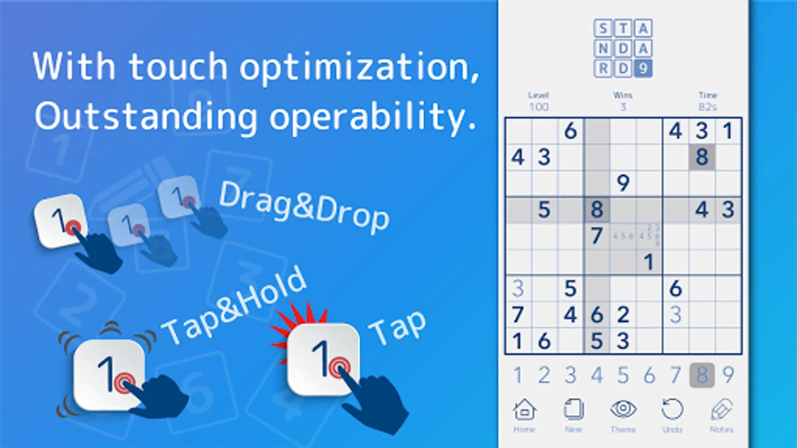 Can be operated by drag&drop, tap and hap&hold.