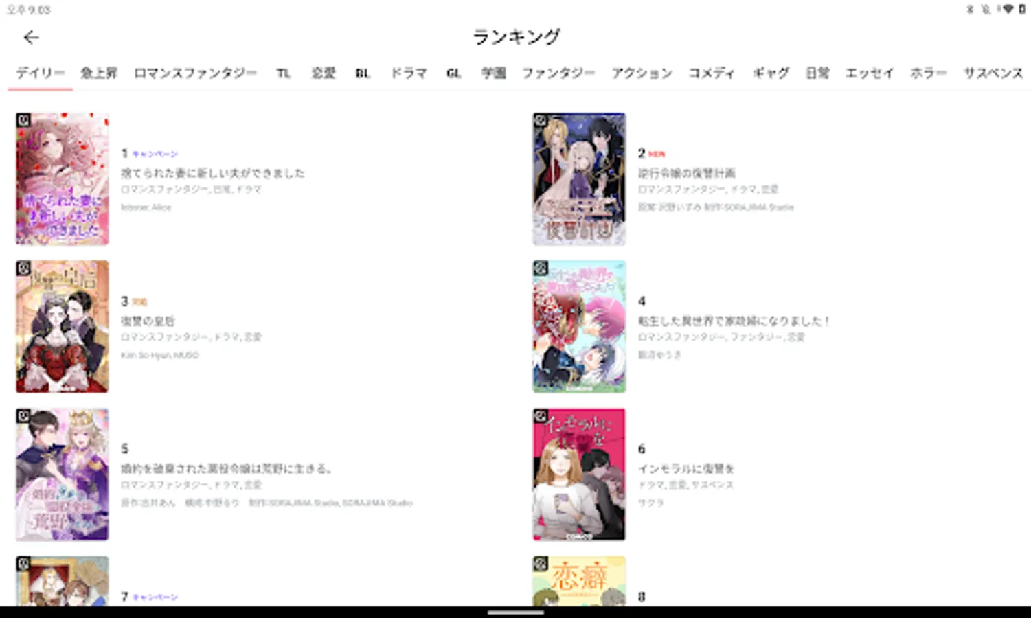 You can read original works in a wide variety of genres such as romance, gags, horror, action, etc. for free.