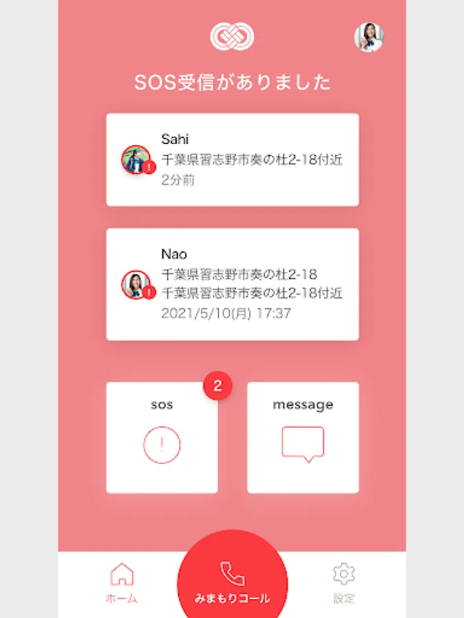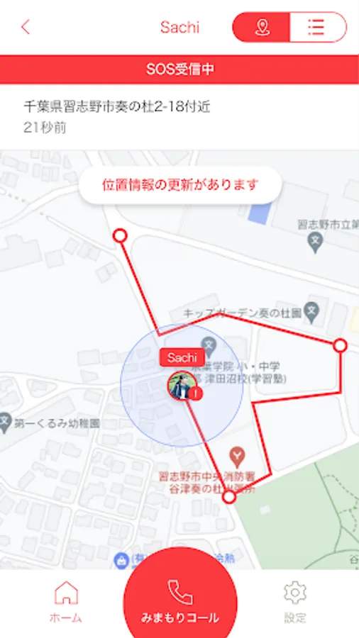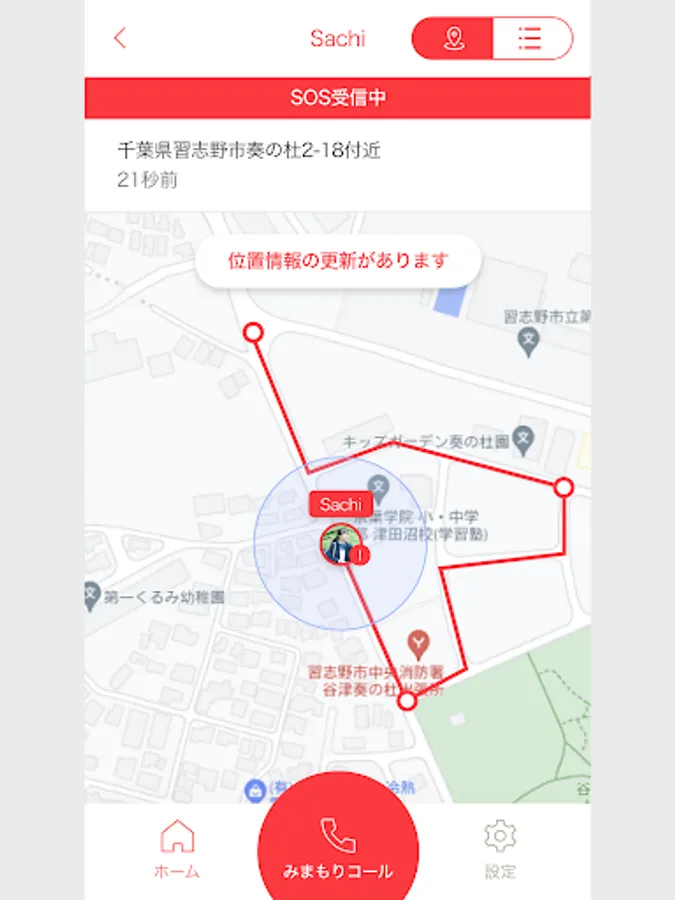 In addition to receiving a notification when SOS is received, you can also check detailed information such as the date and time when SOS was issued and location information on the map. As long as the omamolink user keeps issuing SOS, the SOS information will be updated every minute.