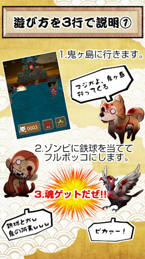 By operating the iron ball in the "Onigashima" You can kill a zombie.